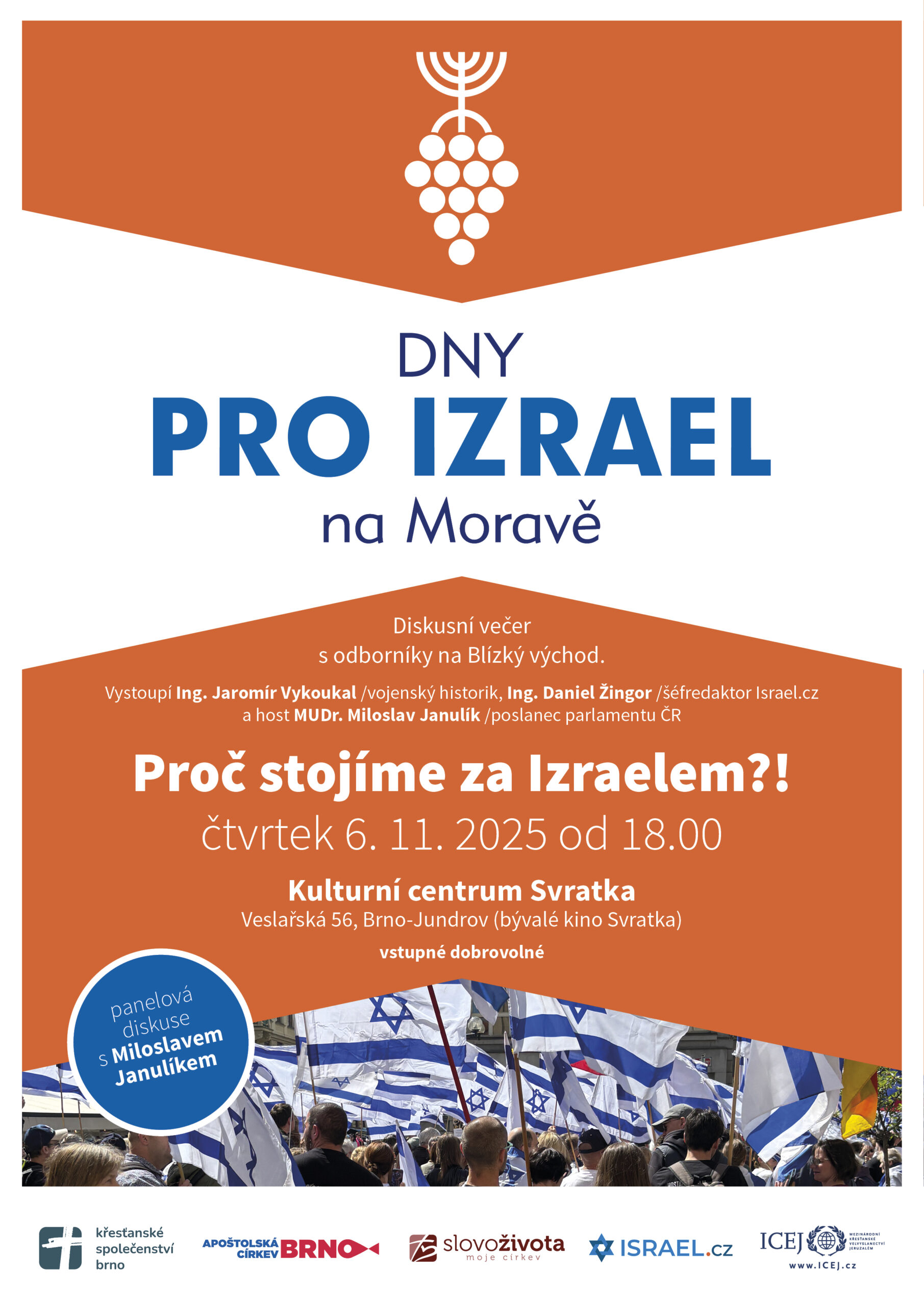 Připojte se k akci "Dny pro Izrael na Moravě". Diskusní večer s odborníky na Blízký východ bude zaměřený na téma dlouhodobě přátelských vztahů mezi Českou republikou a Státem Izrael. Vstup […]